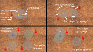 When we consider that these Patrol Spawns can be duplicated if Players are split into separate Player Groups, you can easily have an effective spawning speed that is less than 10 seconds.