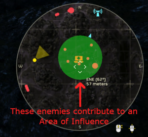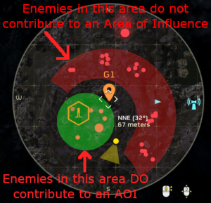 If either condition isn't met, no Area of Influence exists. The static spawns that are relevant to this are only the ones in the "Main" area for the location and do not include the spawns in outlying structures. Taking out those Enemies will allow to lower Heat generation of the Objective area.